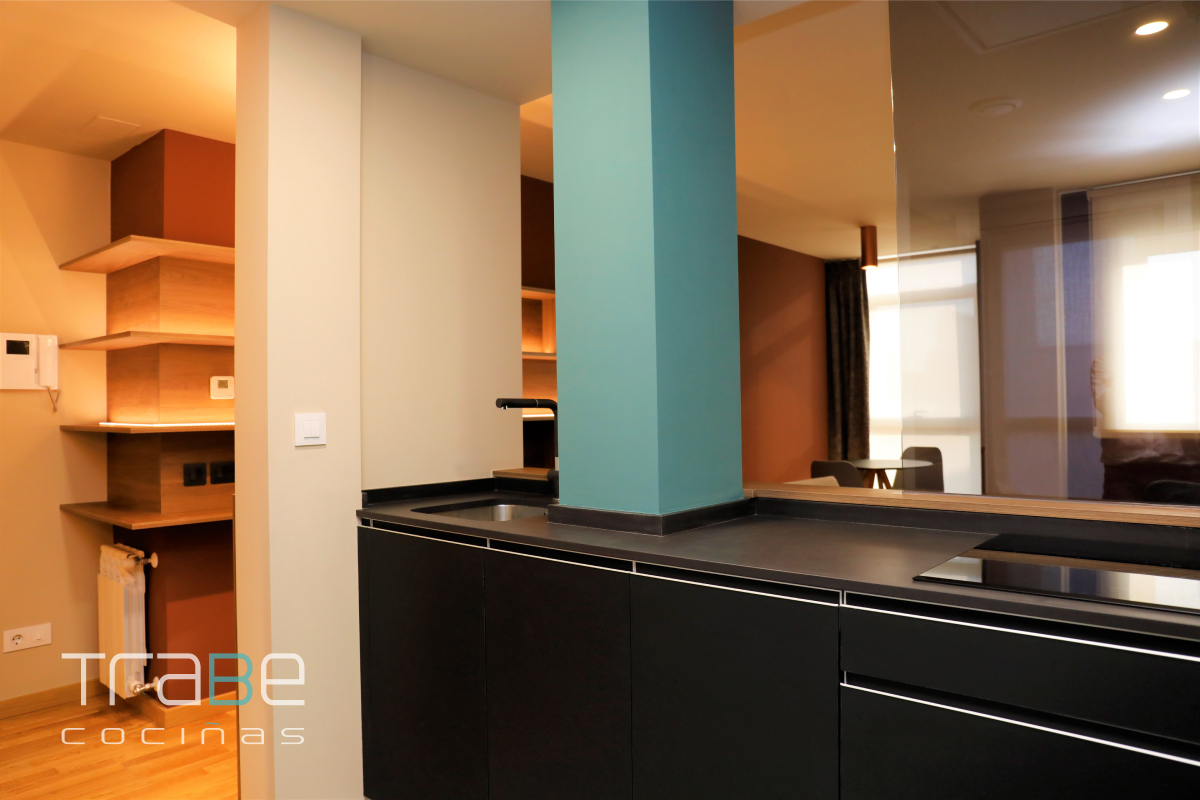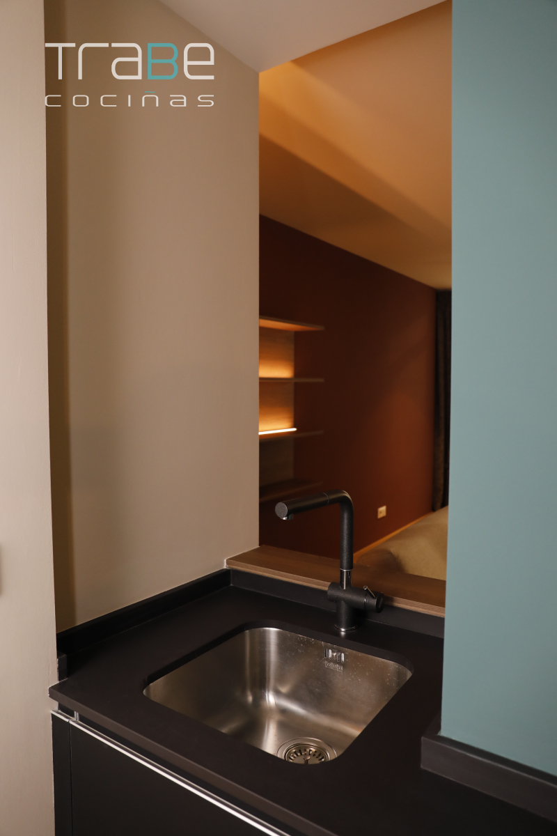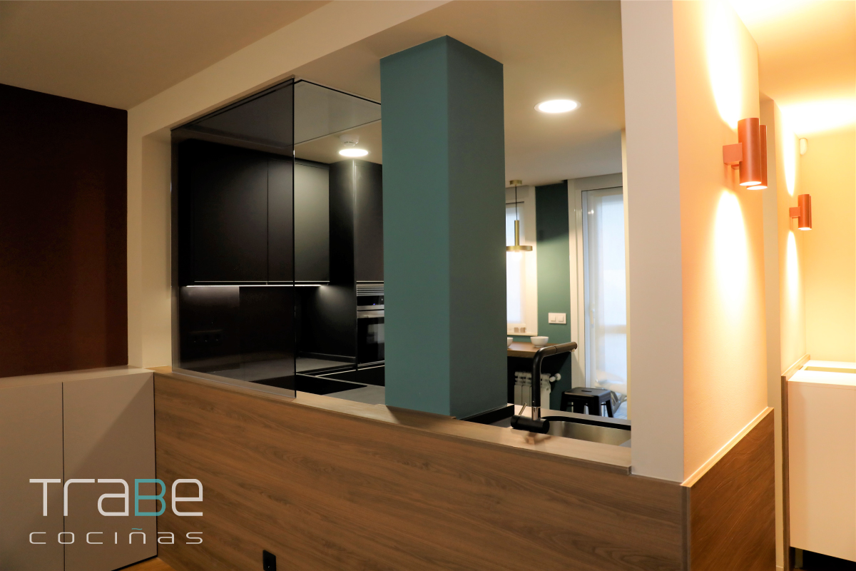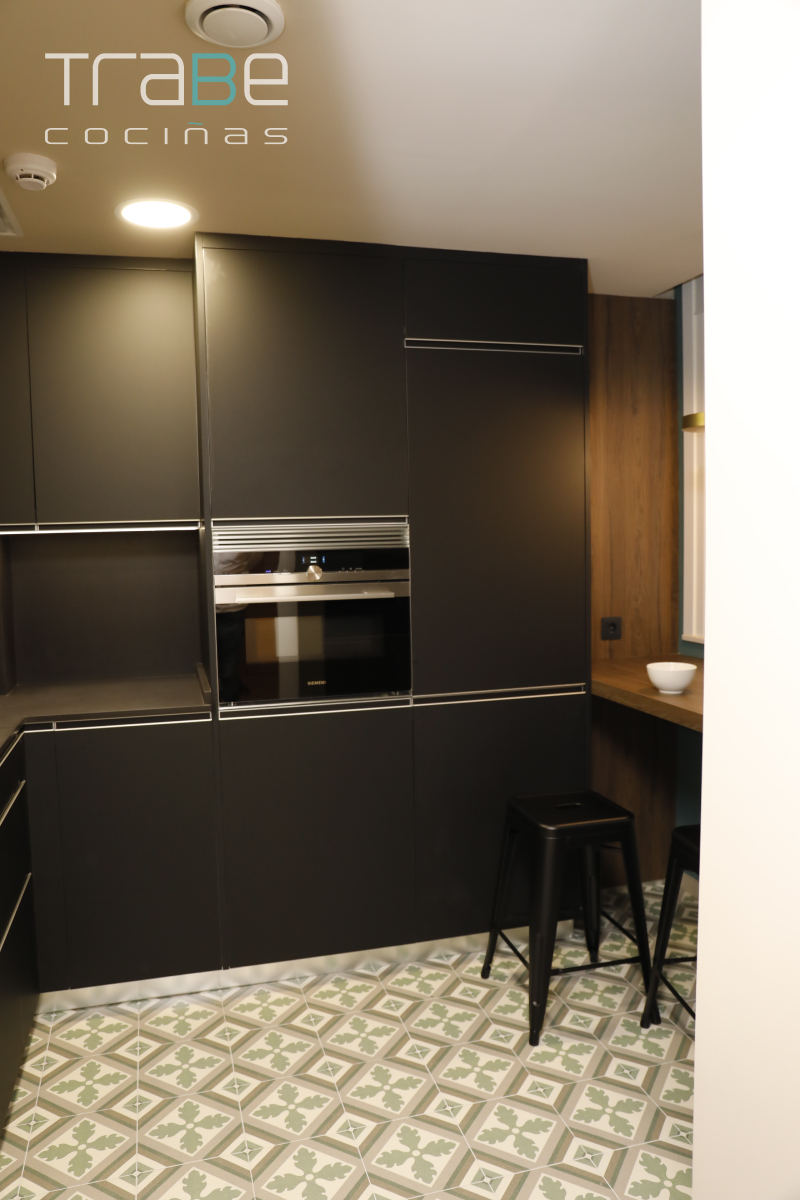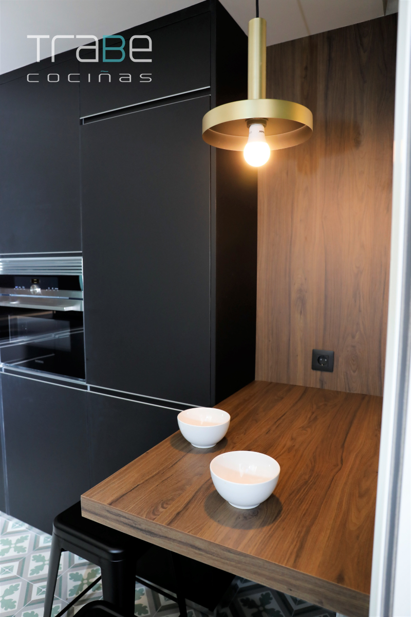 Estupendo proyecto en el que hemos colaborado con el Estudio de Interiorismo Fernando Gómez. Una cocina en Atlántico Laminado Mate Negro y Nogal de Senssia que consigue una escena elegante, que permite una vez más conectar la cocina con el salón comedor, logrando un efecto de espacio más abierto y comunicado. Se ha cuidado de cada pequeño detalle, incluyendo grifos, apliques y electrodomésticos para que combine totalmente con el diseño de la cocina.